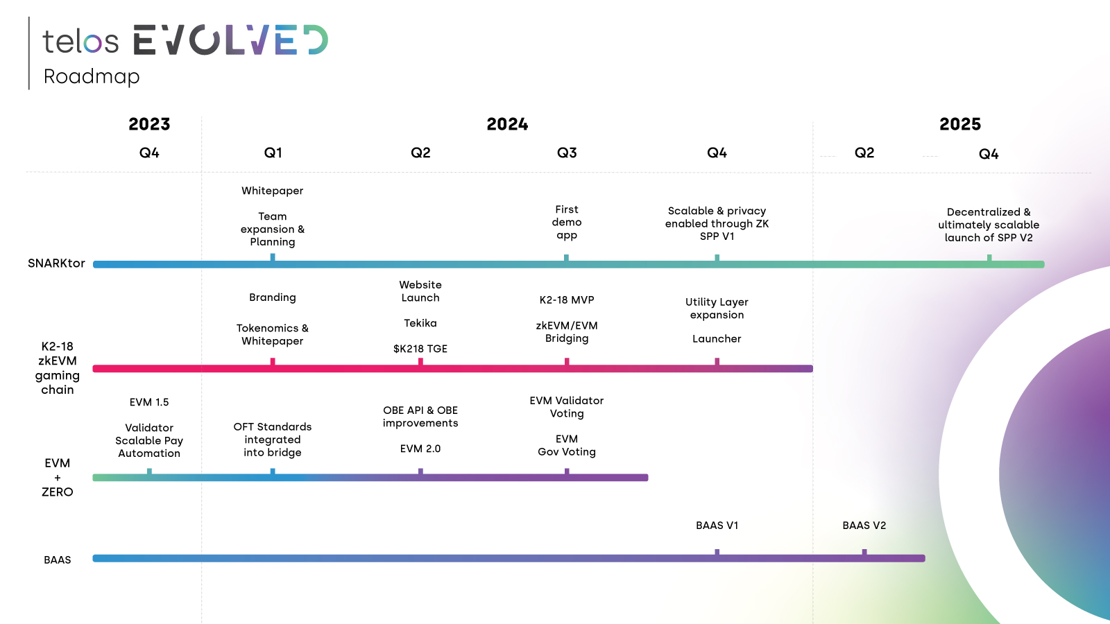 The team launched the Telos EVM in late 2021 to enhance compatibility with existing applications, tooling and networks, which then paved the way for Telos’s transition into a true Layer 0 network enabling the creation of new blockchains that utilise Telos Zero Consensus.