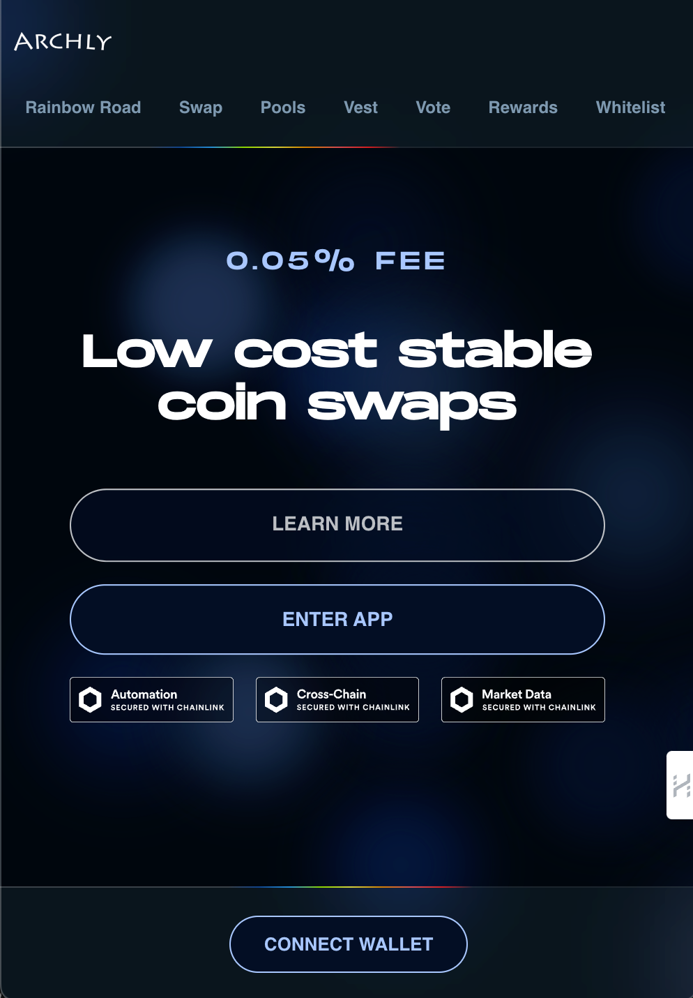 Archly works to empower any user on any chain to engage in seamless cross-chain experiences using our Rainbow Road. Our mission is to provide an abstraction layer of infrastructure across any chain on which projects can build upon to power any scenario in a reliable, secure, and consistent environment.